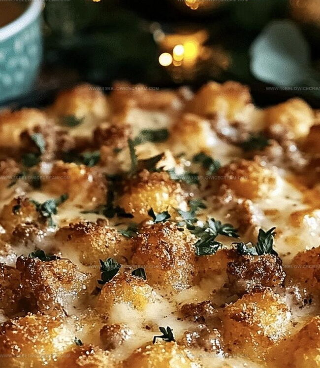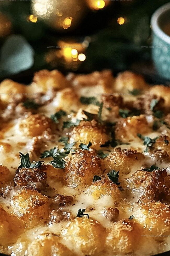 Crispy potato nuggets nestled beneath creamy, savory layers promise pure satisfaction.