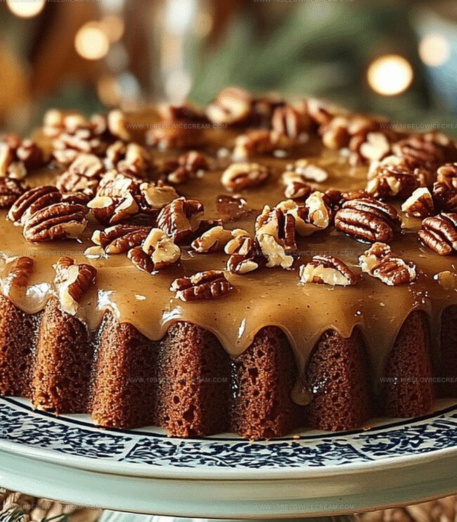Moist cake becomes a canvas for luxurious praline sauce that seeps into every delectable crumb.