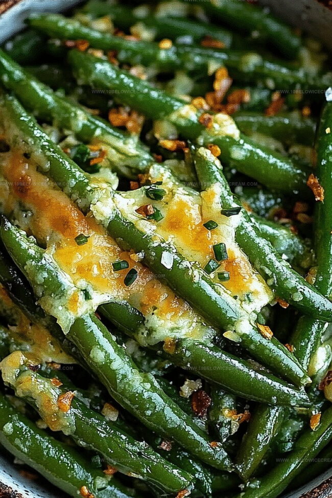 Present the green beans right away while the cheese is still warm and slightly melted, creating an irresistible and appetizing side dish that will impress everyone at the table.