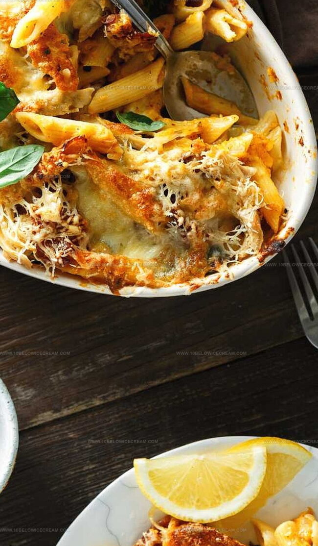Hearty Chicken Pasta Bake promises comfort with layers of creamy goodness and golden-brown cheese. Perfectly balanced flavors invite warm family dinners where you can savor each delightful, cheesy bite.