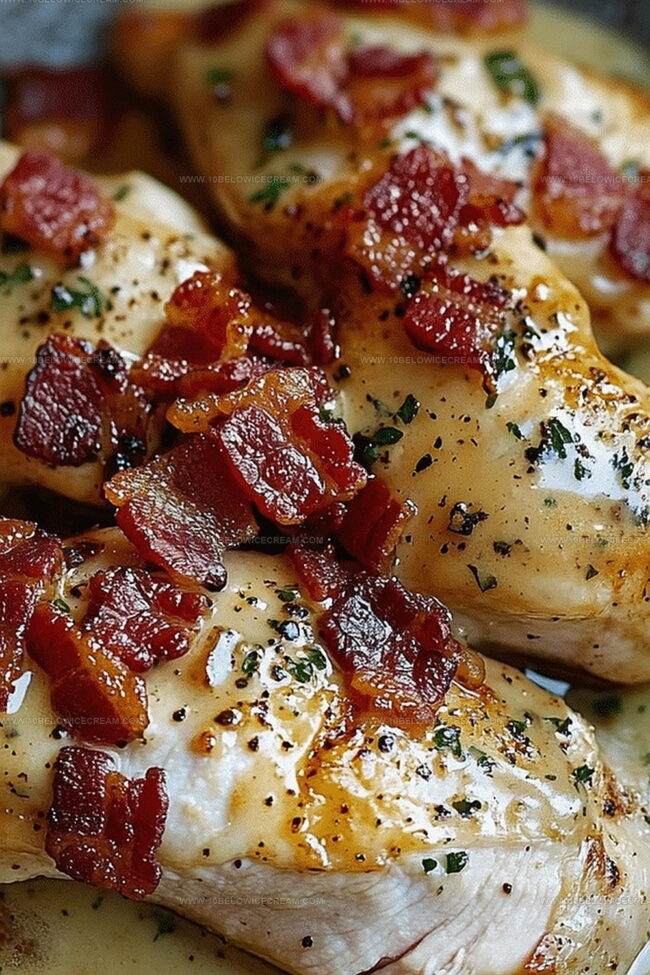 Place the seasoned chicken into the bacon-infused skillet. Cook for 3-4 minutes on each side until a beautiful golden-brown crust develops, creating a mouthwatering caramelized exterior.