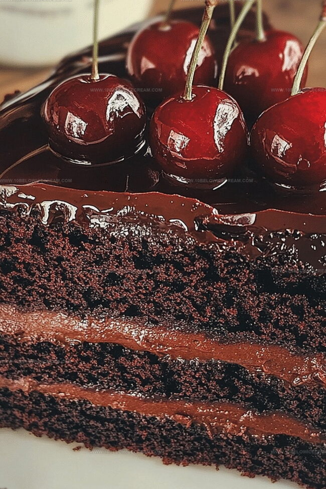 - Slice and serve, enjoying the rich, decadent chocolate and cherry-infused dessert.