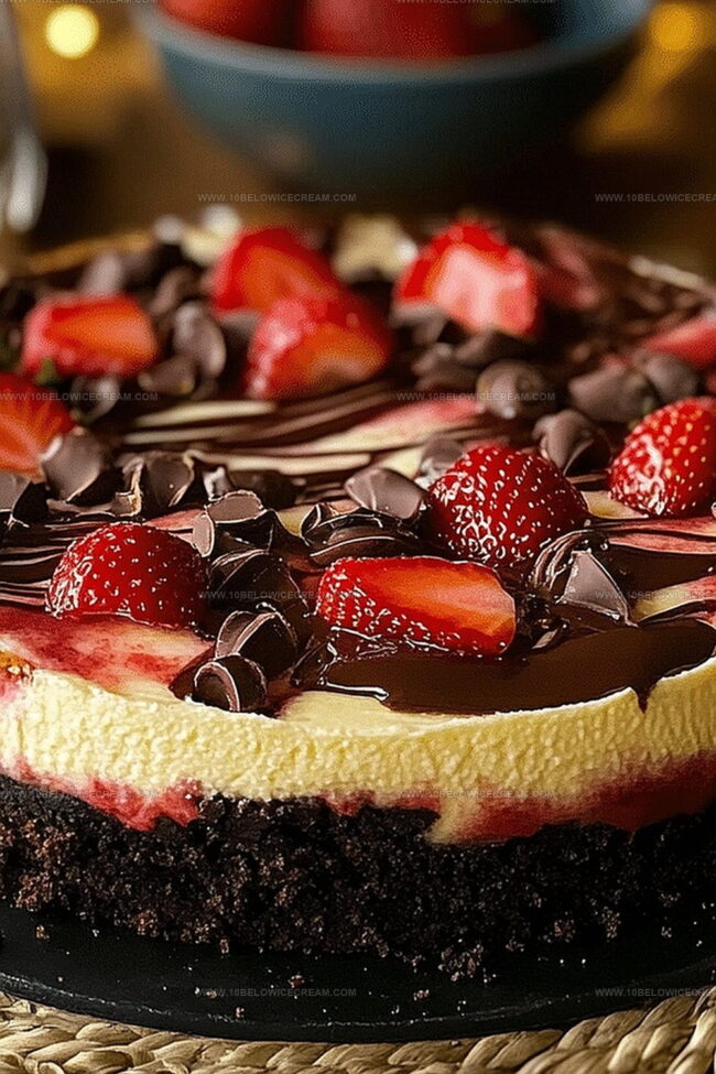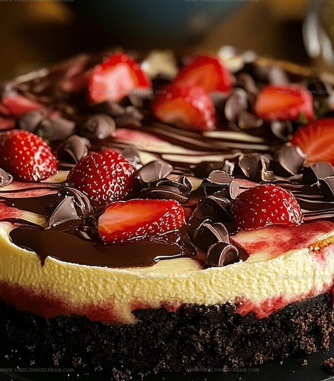Creamy chocolate strawberry swirl cheesecake delivers a sensational dessert experience that blends rich chocolate and sweet strawberry notes. Delicate swirls and luxurious textures invite passionate bakers to create an irresistible treat perfect for special celebrations or intimate gatherings.