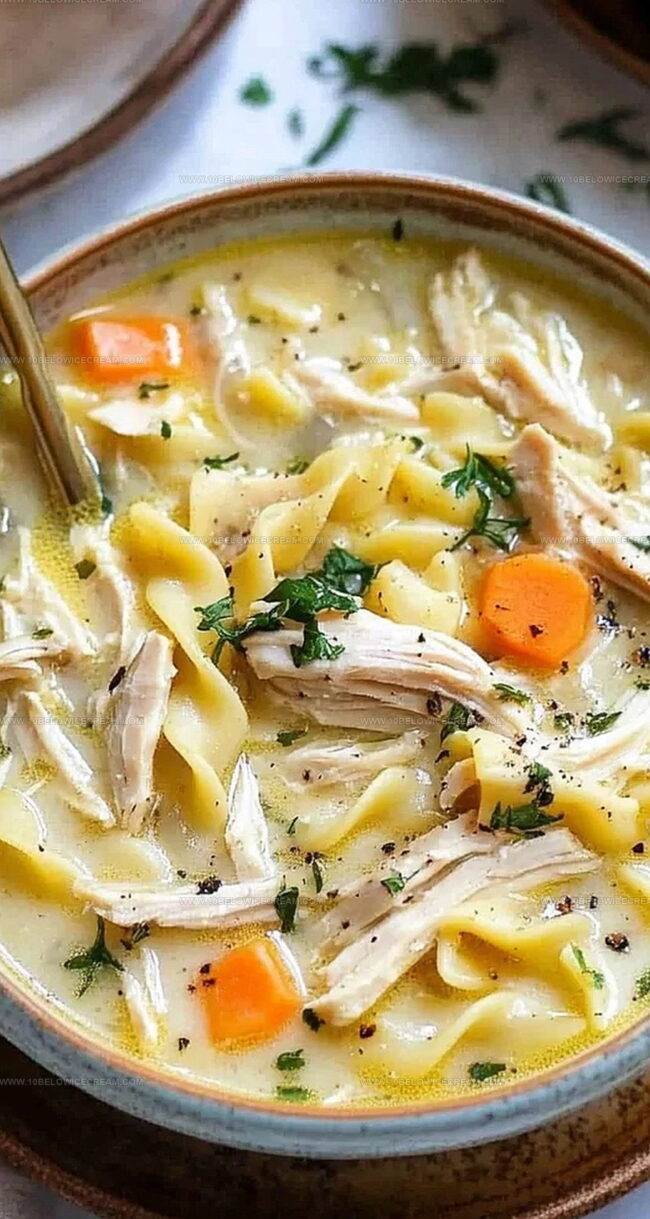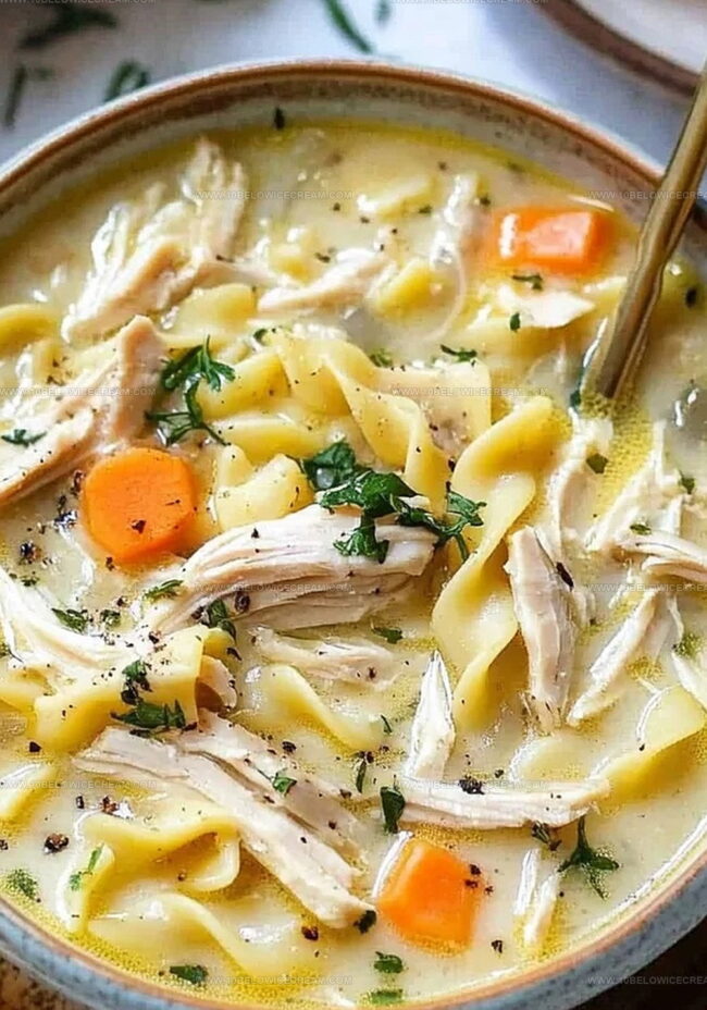 Comforting “creamy chicken noodle soup” blends classic homestyle flavors with rich, velvety textures. Hearty ingredients and simple preparation make this soul-warming dish perfect for chilly evenings you’ll savor to the last spoonful.