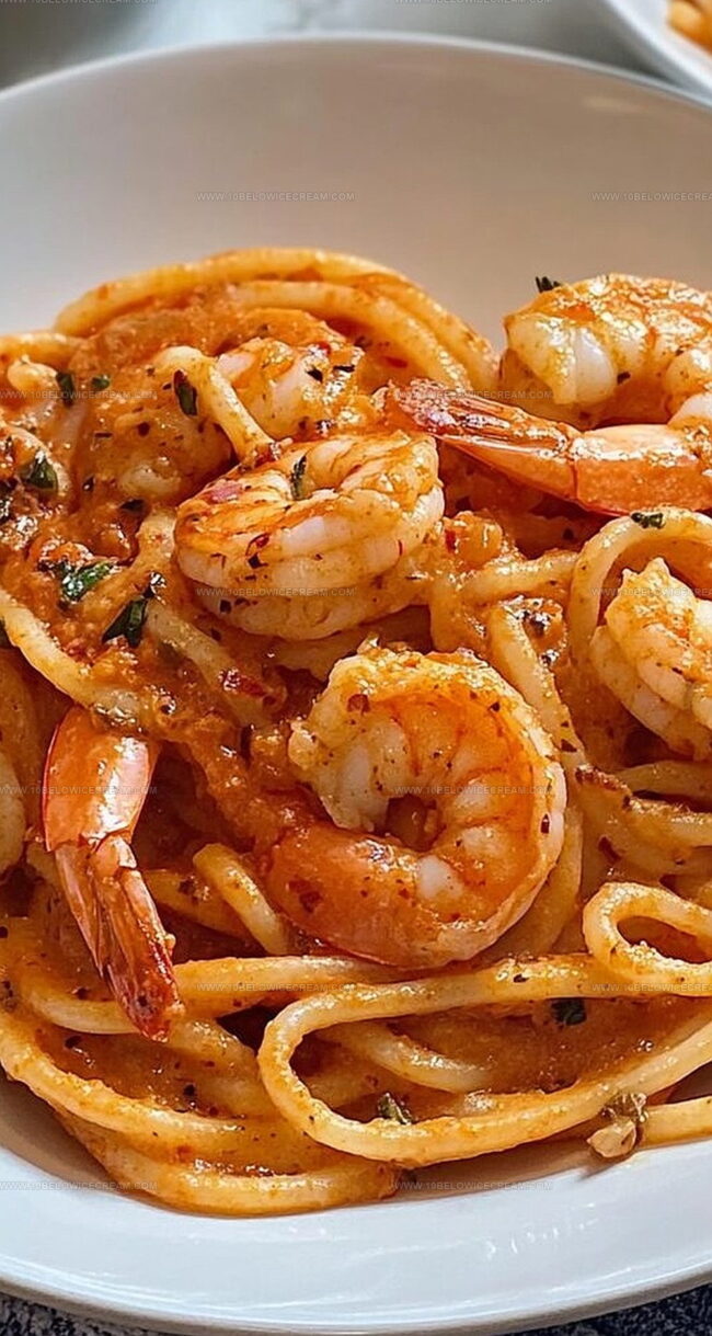 A delightful creamy rose bucatini dances with succulent shrimp on your plate, promising pure culinary magic.