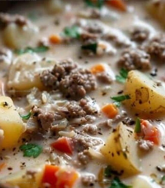 Meat Base:Vegetables and Broth:Creamy and Finishing Ingredients:How to Make Crockpot Creamy Potato & Hamburger Soup Easily