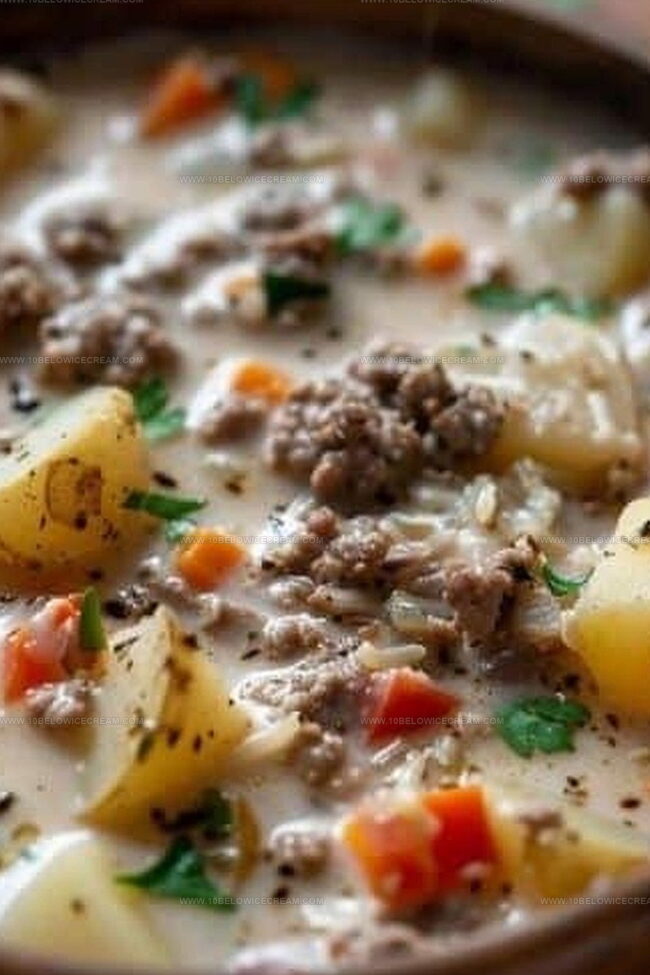 Coziest Crockpot Creamy Potato & Hamburger Soup Recipe