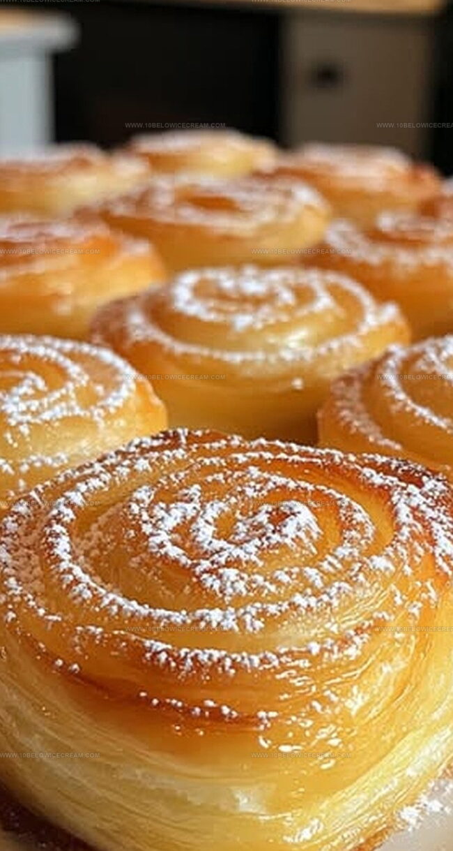 - Dust warm cruffins with powdered sugar, pipe cream filling into centers, and serve immediately.
