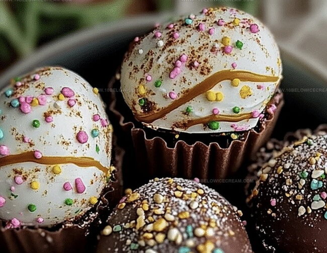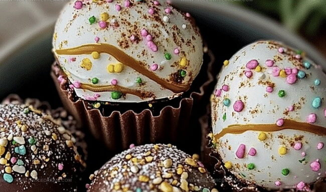 Sweet chocolate cake crumbles get rolled into delightful Easter egg cake bites that sparkle with festive charm. Spring celebrations come alive with these charming miniature treats packed with creamy richness and playful decorative sprinkles.