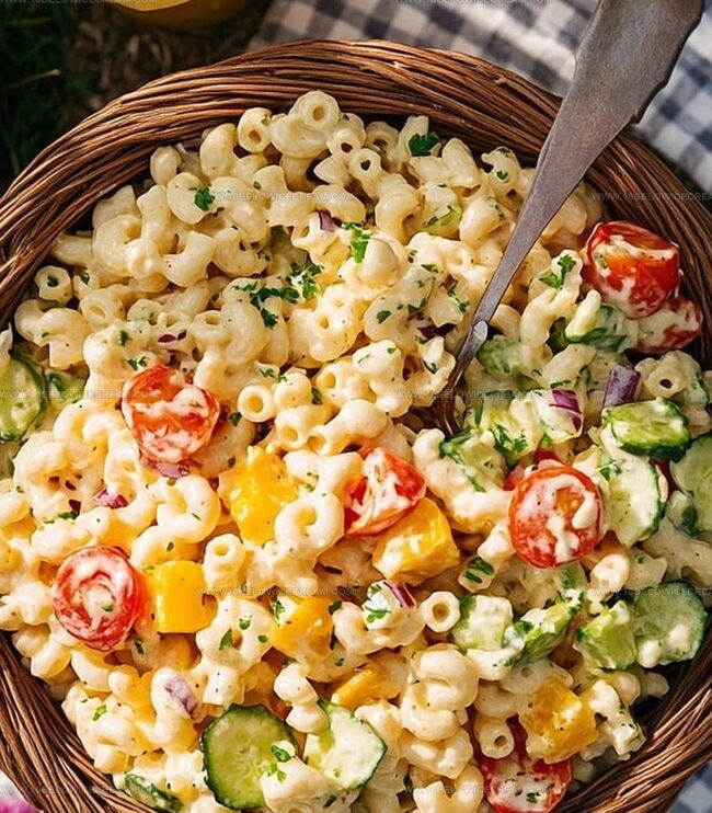 Creamy, zesty macaroni salad delights taste buds with its perfect blend of tangy mayo, crisp vegetables, and pasta. Summer gatherings become more delicious when you bring this crowd-pleasing classic to the table.