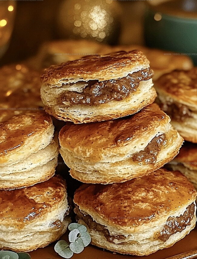Savory roast beef nestled between tender, flaky biscuits promises a delightful twist on classic sandwich fare.
