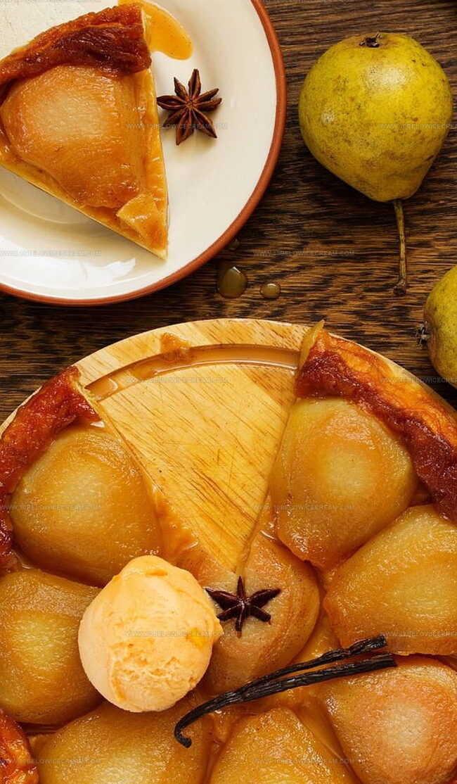 - Remove from the oven and permit the tart to rest momentarily, then execute a confident inversion onto a serving plate, revealing the glistening caramelized pears.