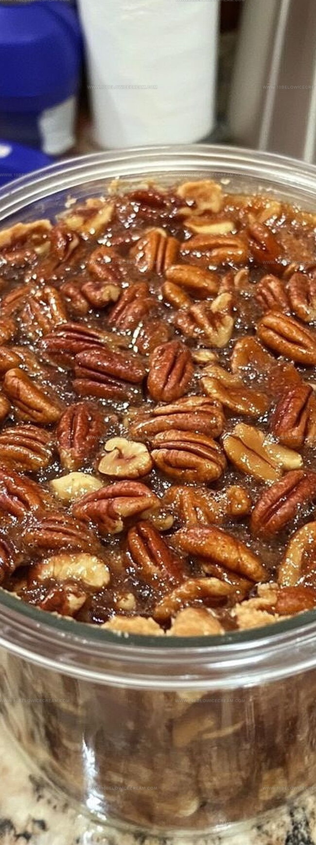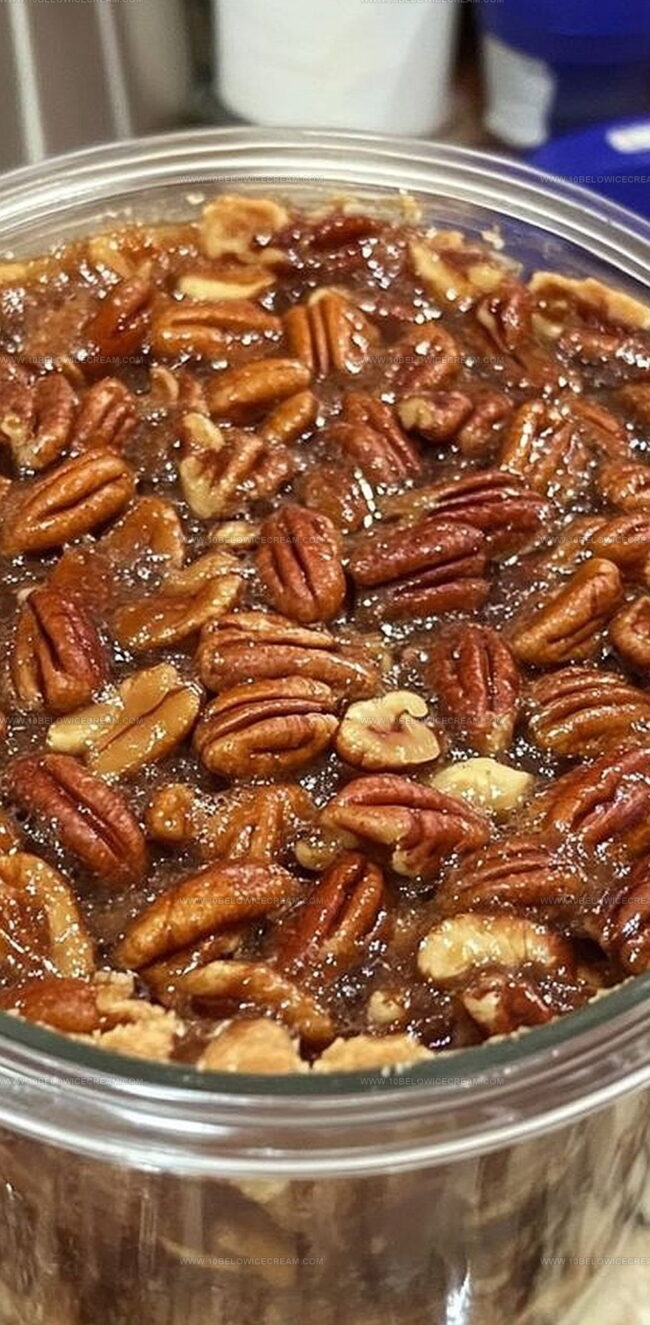 Gently tumble pecan halves into the luscious mixture, using a careful folding technique. Ensure each pecan gets a luxurious coating of the sweet mixture, creating a perfect nutty embrace.