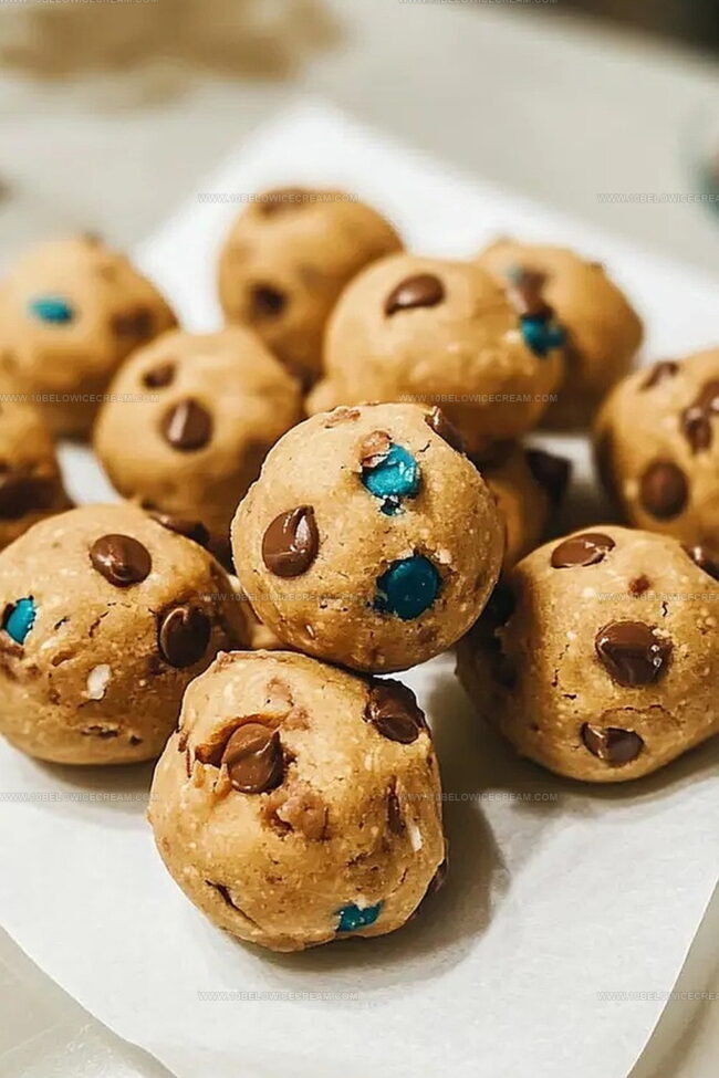 Transfer the dough balls onto a parchment-lined baking sheet or plate. For extra visual appeal, press additional chocolate chips or candy pieces on top. Refrigerate for a minimum of 30 minutes to help them firm up perfectly.