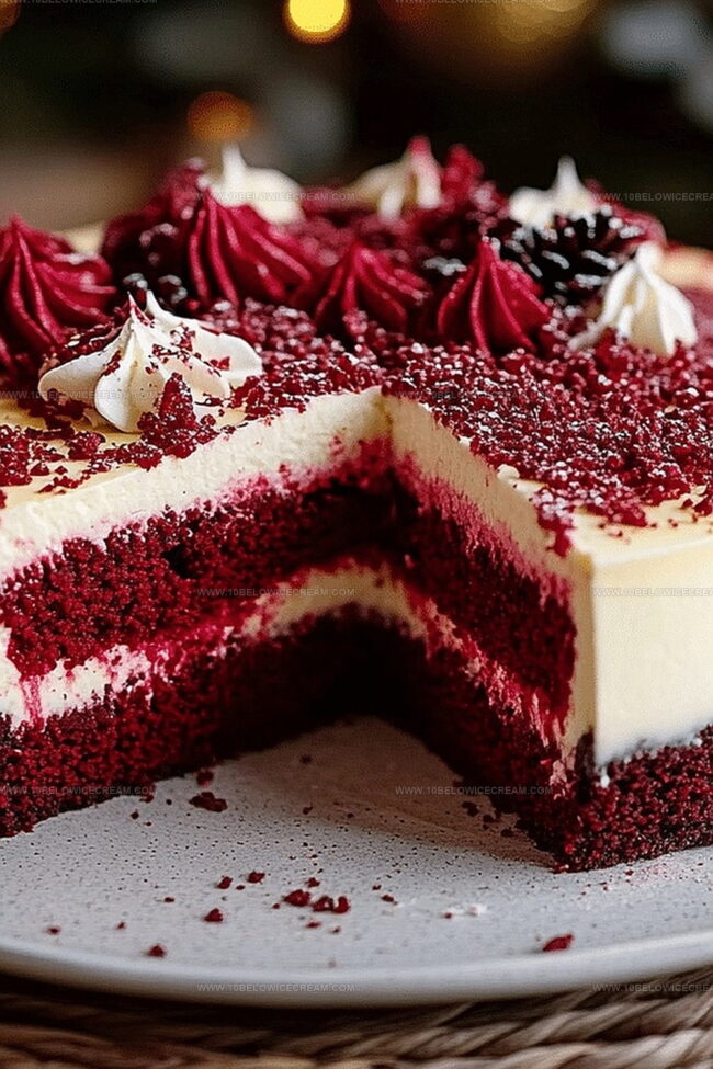Creamy swirls of decadent red velvet cheesecake dance across my favorite dessert plate, promising pure indulgence.
