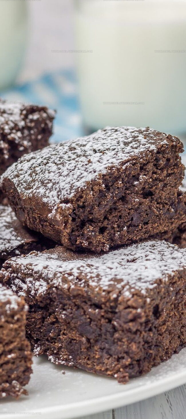 Remove brownies from the oven and let them cool inside the pan. While still slightly warm, slice into squares. Dust the tops generously with powdered sugar, creating a beautiful snow-like effect.