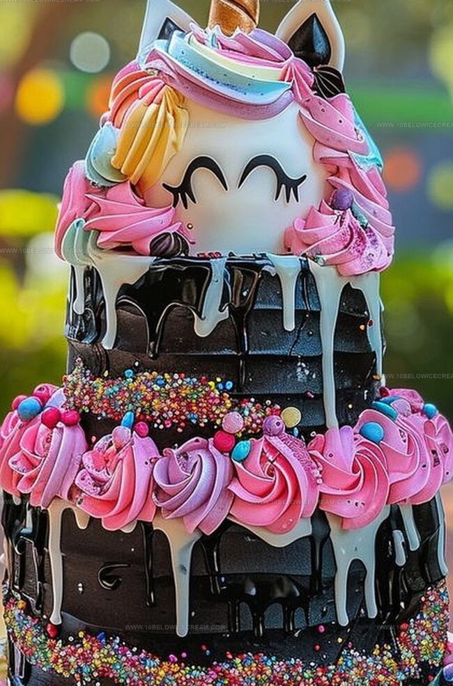 - Add final whimsical touches by sprinkling rainbow confetti, edible glitter, and crowning with a playful unicorn cake topper.