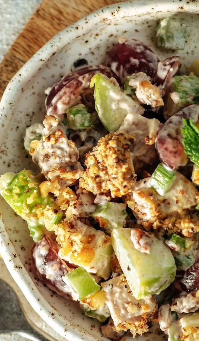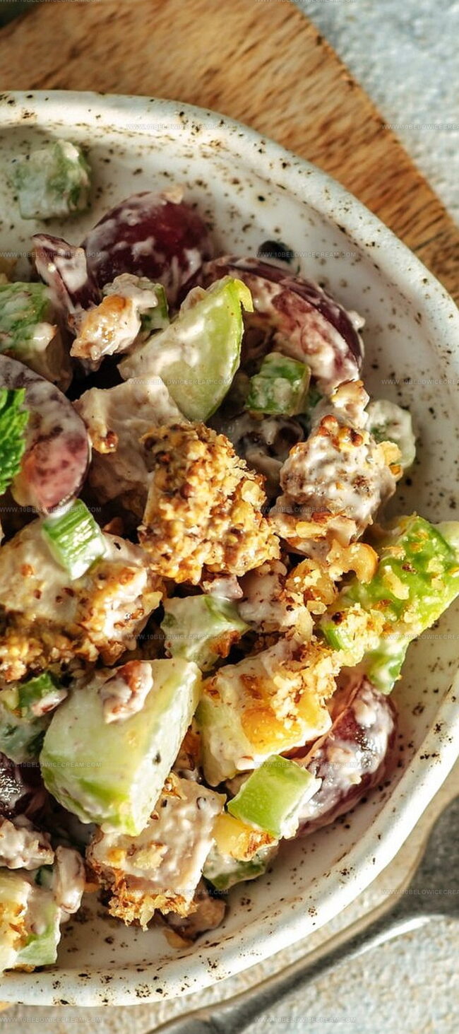 Apples, celery, and walnuts dance together in a creamy dressing, creating a classic dish with modern charm.